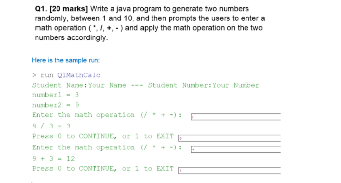 Solved Q1. [20 Marks] Write A Java Program To Generate Two | Chegg.com from www.chegg.com